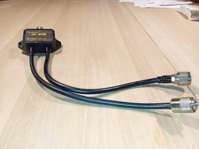 Comet CF-416A er en duplexer / splitter til amatørradio, der gør det muligt for et enkelt koaksialkabel at overføre både lavbånds- (HF, VHF) og højbånds- (UHF) signaler samtidigt til en dual band antenne eller at kombinere to radioer på én antenne. Den bruger båndpasfiltre med høj isolation (over 60 dB) til at adskille signalerne, har et SO-239-stik til den fælles indgang og to PL-259-stik til udgangene. "Lavpas"-sektionen dækker 1,3-170 MHz med en nominel effekt på 800 watt PEP, og "Højpas"-sektionen dækker 350-540 MHz med en 500 watt PEP-vurdering.