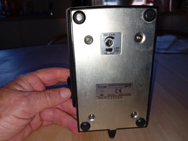 I bunden af mikrofonbasen er der en forstærkningsjustering og en Low Cut-kontakt. Denne mikrofon strømforsynes fra Icom-transceiveren. Mikrofonkablerne sluttes til et standard Icom 8-bens mikrofonstik.