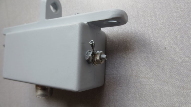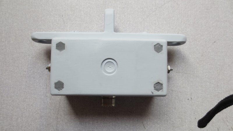 Hjemmelavet Balun 1:1 viklet på fertilkerne og monteret i vandtæt box med ophæng og loddeører vtil tråden. Indgang er et SO239 stik. Tilført effekt SSB-200W og CW-100W.