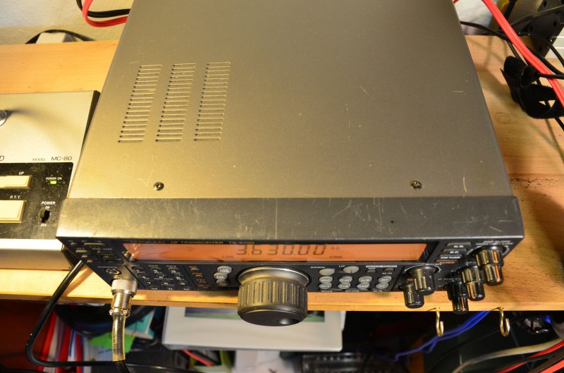 Tranceiveren har lidt brugsspor, men fungerer perfekt. Der medfølger mikrofon type MC80 samt 12V strømkabel.