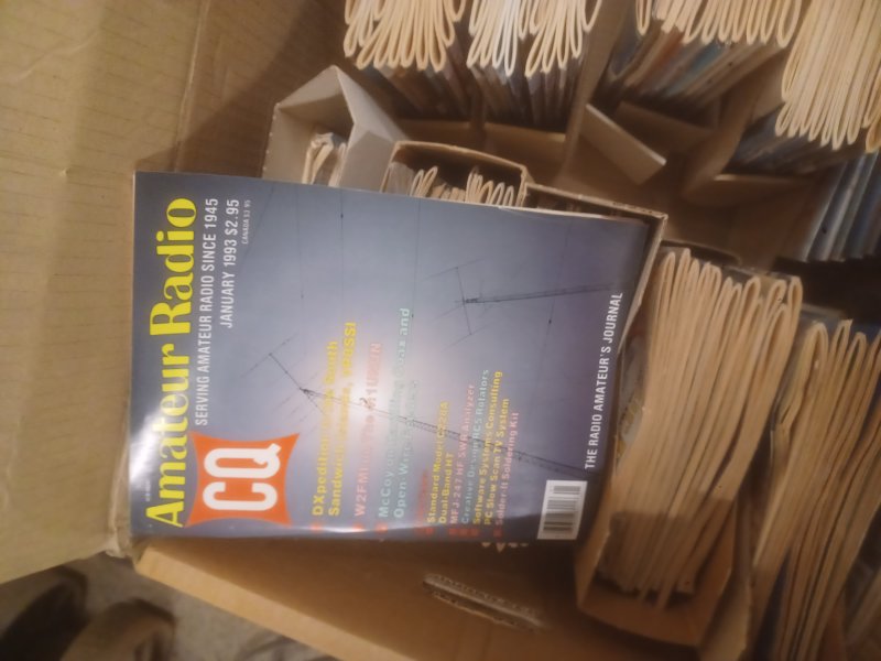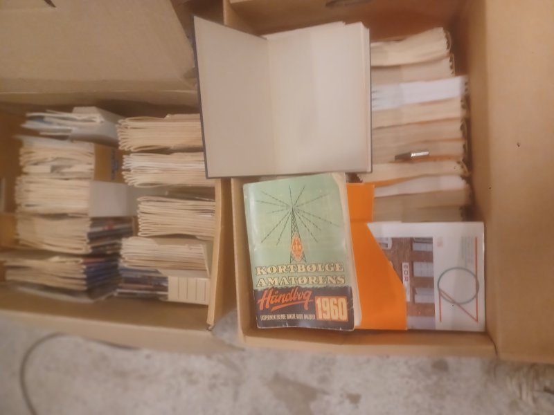 To flyttekasser med radioamatør blade fra forrige årtusind samt bøger om radioamatør. Fra min afdøde bror som var radioamatør i et langt liv.