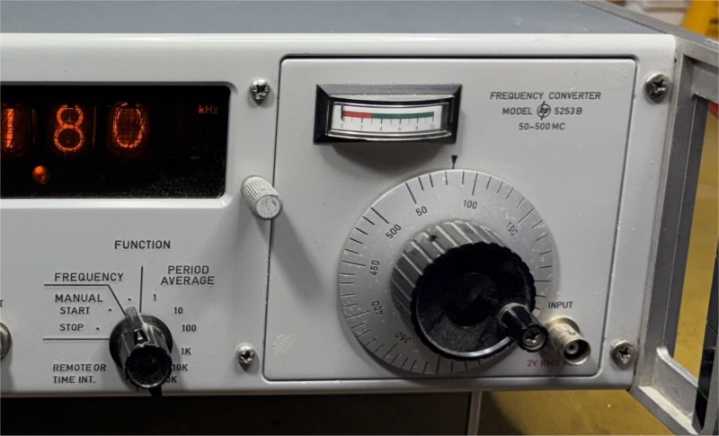 Den har desuden indbygget en original option, nemlig et Frequency Converter modul, HP 5253B, som udvider tælleområdet fra 50MHz til 500MHz.