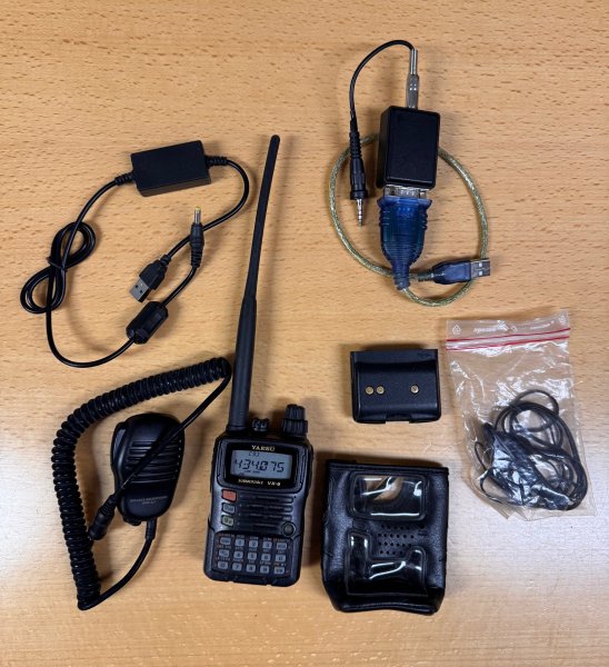 En rigtig fin Yaesu VX6. Der medfølger original håndmike og orignal headset samt ekstra originalt batteri, uoriginal USB-lader og hjemmelavet programmeringskabel (der virker). Dvs. præcist det er er på billedet og ikke andet.