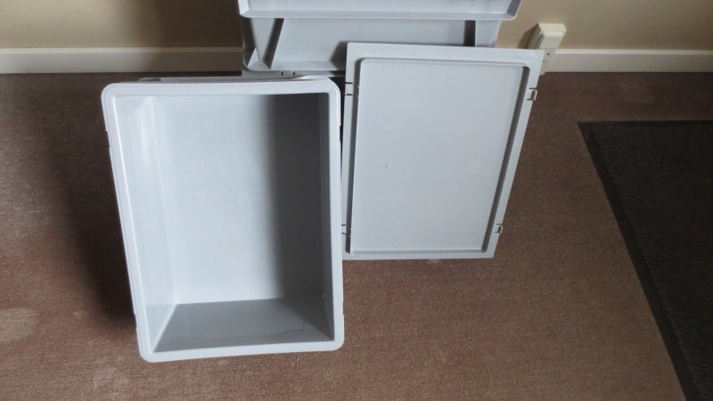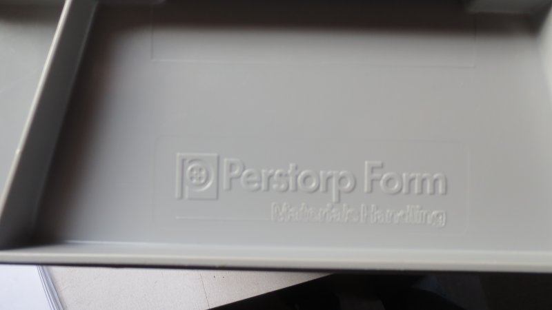 8 stk. Lager/opbevaring/transport kasser Stærk. Stabelbar, med click-on låg. Mærke: Perstorp Form.