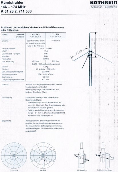 KATHREIN K 51 26 2, 146MHz til rørmast montering ø20 - 54mm.Med N-bøsning. 700w.