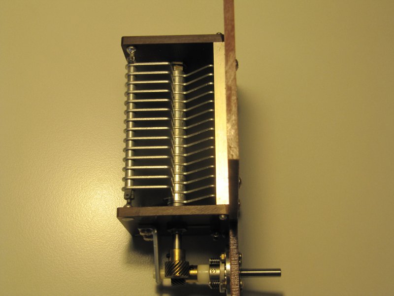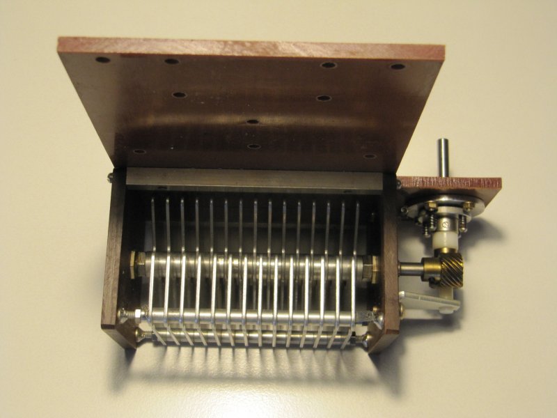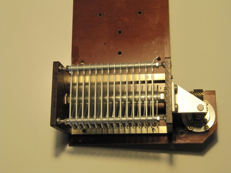 Fin drejekondensator med vinkel snekkedrev 25-265 pf og 5 mm pladeafstand.