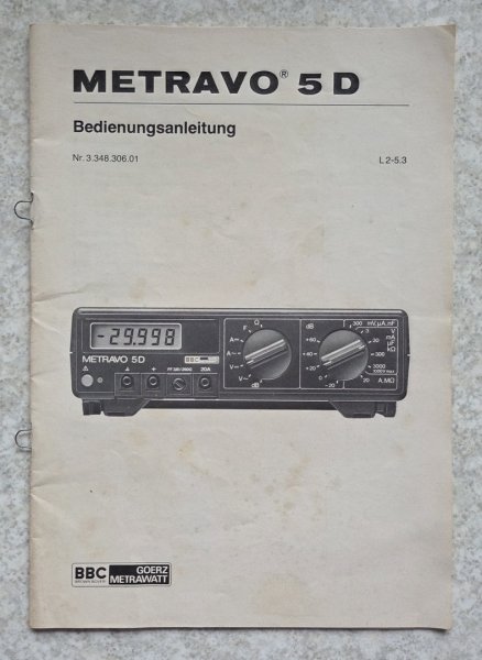 For dødsbo sælges digitalt multimeter BBC METRAVO 5D, m. 5 digits, inkl. testledninger og original brugervejledning. Måler spænding, strøm, modstand, kapacitet og dB.