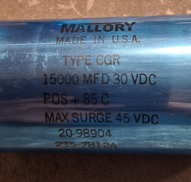 2 stk lytter med skrueterminaler, 15.000 uF 30V, begge er testet OK, til strømforsyning, passer også i Drake PS-7. Mål: 50X92 mm. Prisen er for begge.