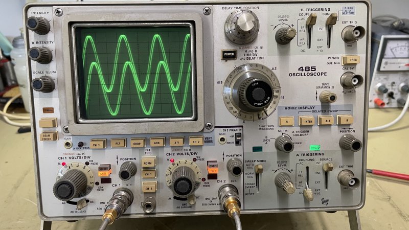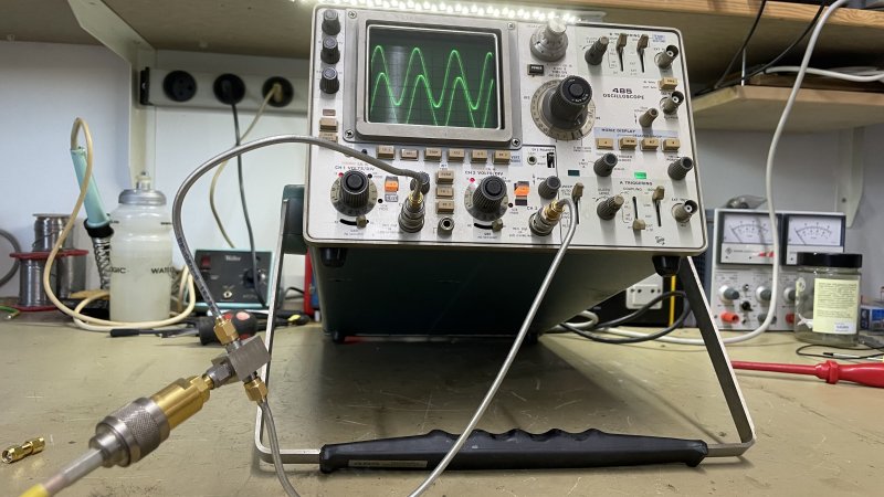 Jeg sælger dette fantastiske Oscilloscope, da det hos mig er blevet overhalet indenom af Digitale Scoper med GHz båndbredde. Scopet er i pæn stand med godt lys i display og de forskellige funktioner virker. Billederne viser scopet måle et 300 MHz / 0 dBm signal via en power splitter og et par semi-rigid kabler.