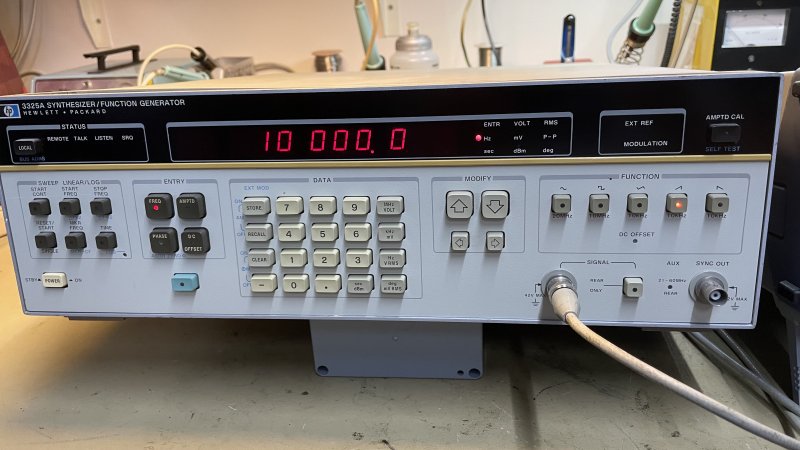 Jeg sælger min gode gamle HP3325A som er i pæn kosmetisk stand og fungerer som den skal rent elektrisk. Jeg bruger den ikke mere, da jeg har fået noget andet.