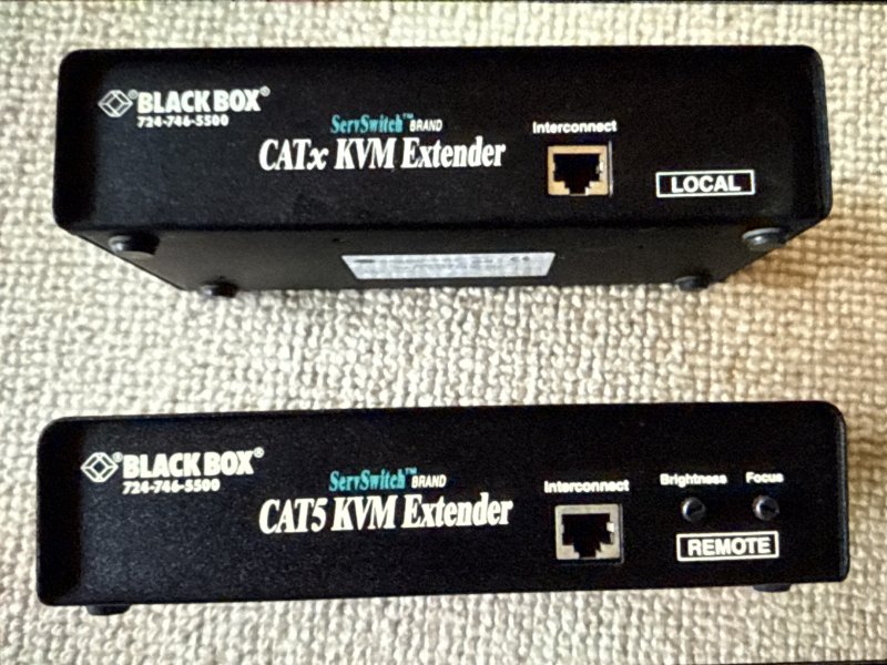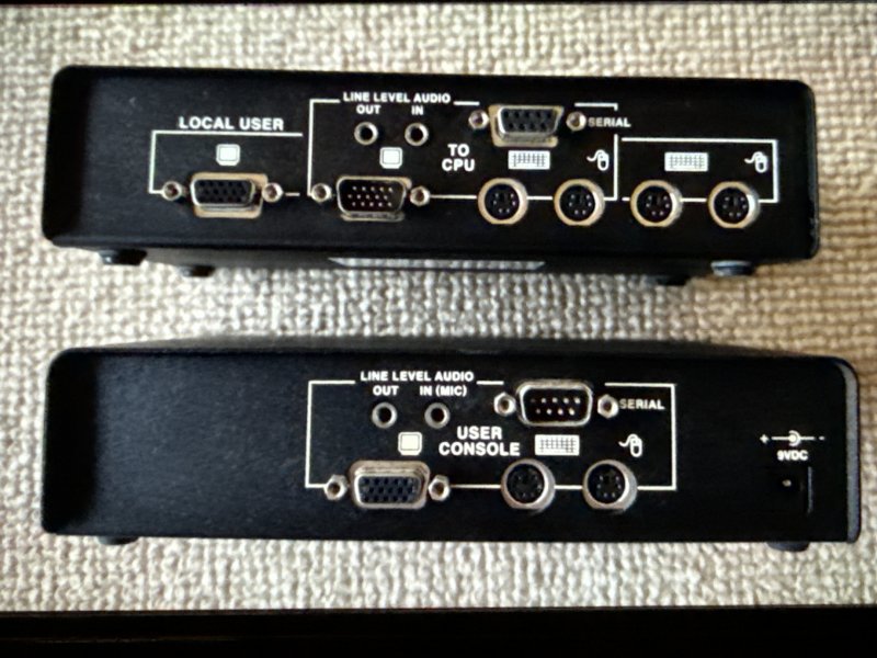 Black box cat5 kvm extender. Anvendes til at extende en PC eller radio med VGA, Comport og lyd over et CAT5 kabel til et andet rum i huset.