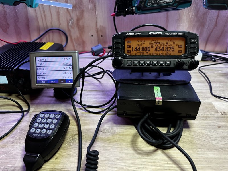 De fleste kender Kenwood D710 og ved det er noget af det ypperste inden for mobil VHF/UHF med APRS. Her er sættet udvidet med en Garmin GPS som tilsluttes TNC via en lille protokol omsætter som giver mulighed for at se GPS kortet med APRS mobilstationer dynamisk, så med disse to sæt kan man køre helt autonomt APRS mellem to kørertøjer (det er det jeg brugte dem til i Kalahari) - det er faktisk ret fedt. Løsningen er ikke helt på niveau med den fra AVMAP Geosat 6, men kommer tæt nok på til det er brugbart til en noget mere spiselig pris.
