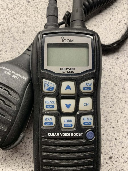 VHF Radio. Icom IC-M35 Buoyant med ekstern microfon. Bordlader og radio står som ny. Kan flyde i vand og derfor vandtæt. Pris plus porto 50kr.