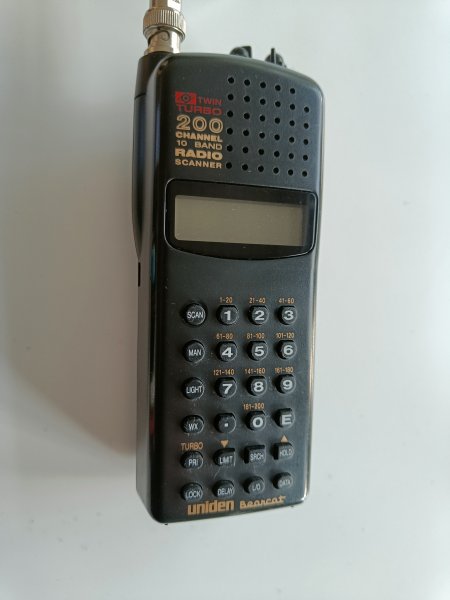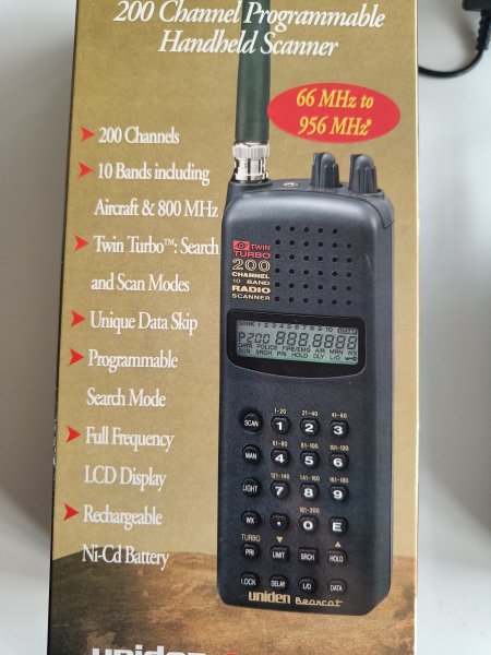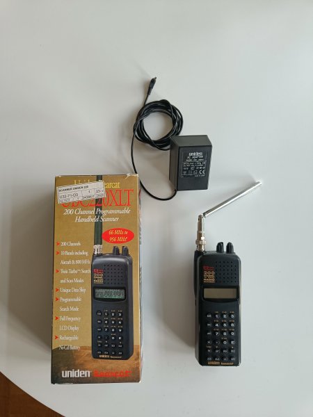 Velholdt Uniden Bearcat BC220XLT radio scanner. Batteriet er NiMh og helt OK. Den har 200 kanaler, 10 bånd inklusive fly og 800 MHz, Twin Turbo søge- og scannetilstande, unik dataspring, programmerbar, søgetilstand og fuld frekvens LCD-skærm.