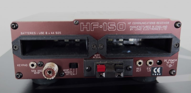 Lowe HF-150 dækker fra 30 kHz til 30 MHz med variabel tuninghastighed afhængigt af den primære tuningknaps rotationshastighed. Tilstandene er AM, AM Synkron, USB og LSB (også til CW/RTTY/FAX). Designet med dobbelt konvertering har valgbare IF-båndbredder på 2,5 og 7 kHz. Tres hukommelser gemmer frekvens og tilstand. LCD-frekvensdisplayet på 1 kHz kan også vise: hukommelsesnummer, tilstand, båndbredde og andre funktioner. Bagpanelet har udgangsstik til højttaler- og optageudgang plus det valgfrie kablede tastatur. Der er også to batterirum, der hver rummer fire AA-batterier (medfølger ikke). Denne radio fungerer også fra 12 VDC.