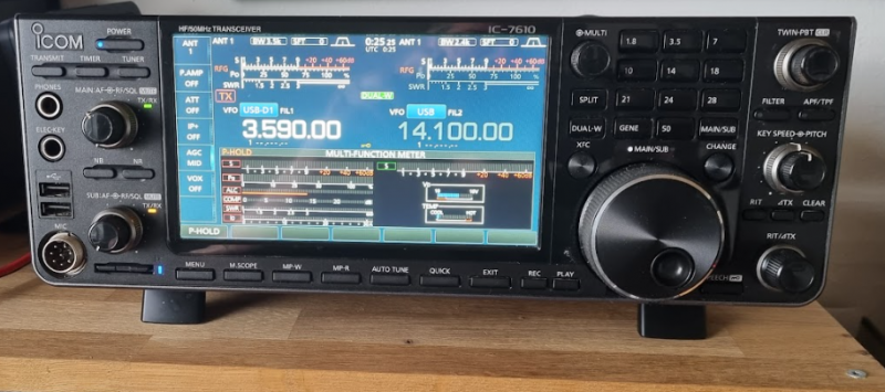 kun brugt sparsomt til cw, aldiig brugt mic på den. leveres i original kasse med manual.