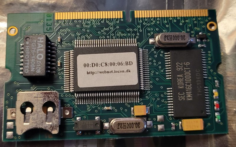 Kortet har en port til netværkskabel, muligvis en ældre AUI- eller BNC-forbindelse.