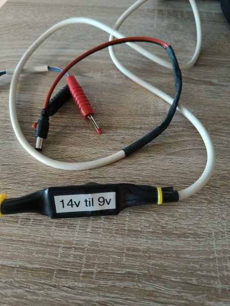 Der medfølger 14v til 9v adapter, da de begge kører på 9v.