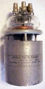 Forced-air cooled transmitting triode, integral radiator. 2.5KW plate dissipation, 12KW plate input, 30MHz full ratings, up to 50MHZ operation possible.