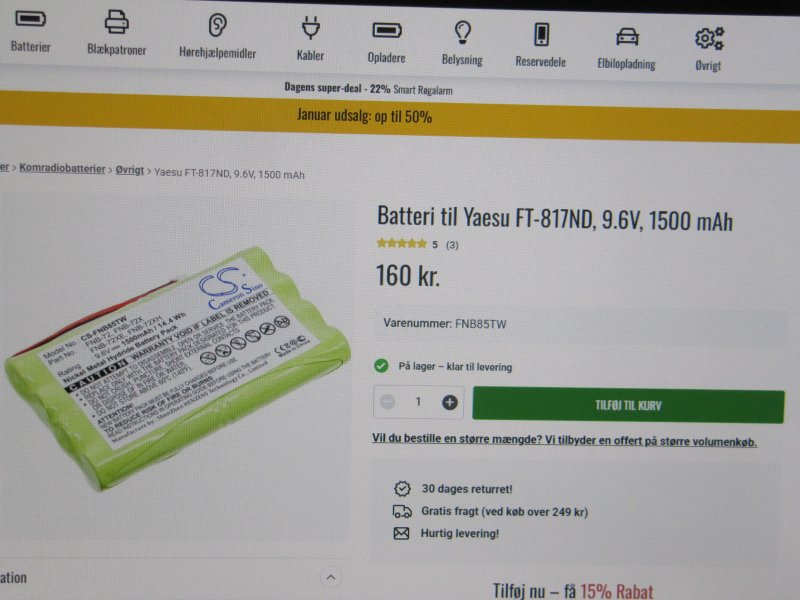 Nyt Batteri til Yaesu TS 817. Jeg har ved en fejl købt 2 stk. batterier til min Yaesu FT 817 og har kun brugt for det ene.