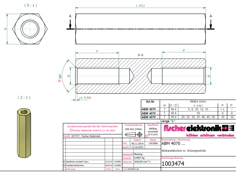 ABM 4070 20 stag i messing og forzinket.