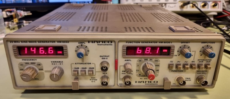 > Sælges: Hameg HM8032 + HM8030-3 Sinus generator og Funktionsgenerator