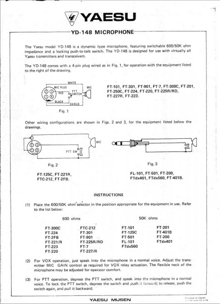 Yaesu YD-148 er en klassisk dynamisk bordmikrofon introduceret i 1970'erne til Yaesu-transceivere o.a. med en omskiftelig impedans på enten 600 Ohm eller 50 kOhm. Den har en push-to-talk (PTT)-knap med låsefunktion, en fleksibel hals og bruger et 8-pols stik med omløber. Den kræver ikke strømforsyning for at fungere.