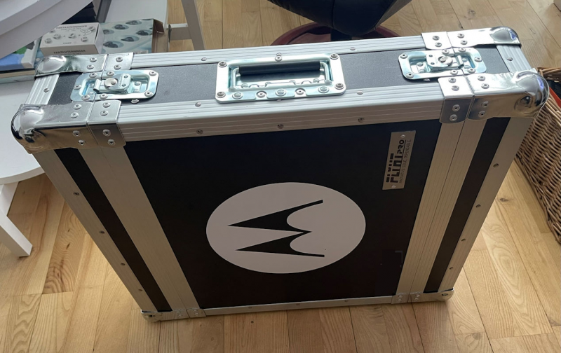 Den sidder i en flightcase med et duplexfilter (25W).