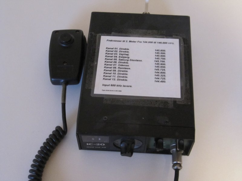 Ældre Icom IC20 VHF station. Den virker og er bestykket med krystaller som vist på billedet. Der er 1 krystal der ikke virker ( defekt er tapet på radioen. Der er indbygger 1750 hz toresender. Mikrofon medfølger.