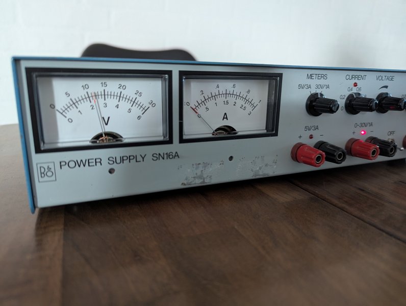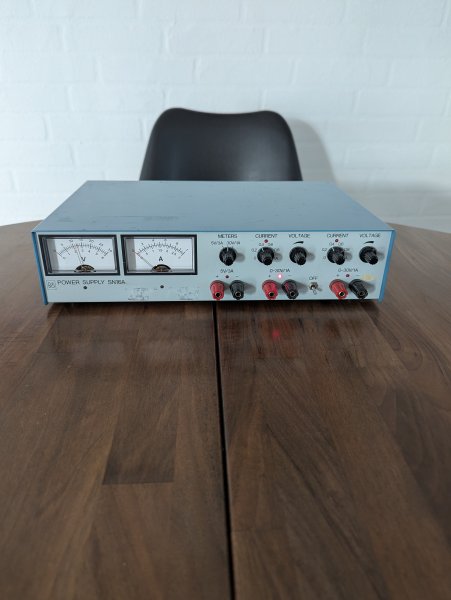 Fin stand og virker. Har mindre anslag på top (se billeder) og et par klistermærker efterladenskaber. Har fået skiftet lytter i de to 0-30V kanaler og spændingspotmetre er renset.