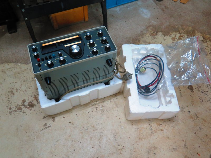 Denne vintage TX har været gemt og glemt i mange år i sin originale papkasse. Den har nærmest ingen brugsspor. Det er en 100Watt med rør i udgangen. Det er noget kabel med til forbindelse af en modtager.