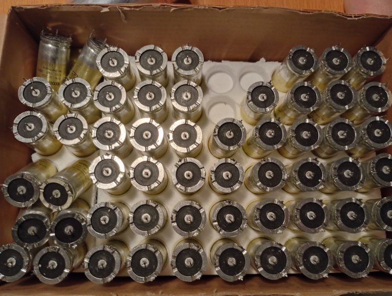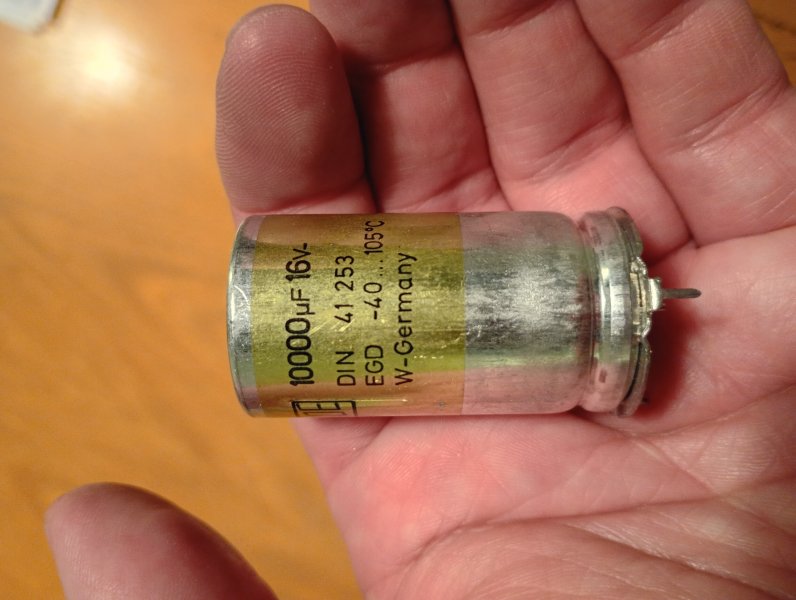 Vintage elektrolyt kondensatorer ca 130 stk fremstillet i Vesttyskland af firmaet Roederstein (ROE). Kapacitet: 10.000 \(\mu F\) Spænding: 16 V Temperaturområde: -40 til 105 °C