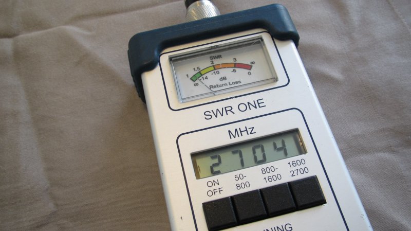 Den måler fint fra ca 20 Mhz til 2700 mhz med frekvensudlæsning og et fint viser instrument. Den benytter almindelige AA batterier, eller opladelige AA batterier.