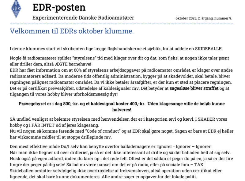 Jeg har lige modtaget det sidste nye EDR posten, oktober 2025, 2. årgang nummer 9