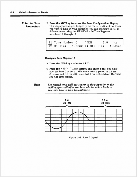 Hej Frank Tak for response. Jeg har downloaded de forskellige manualer som er nødvendige, og fundet de rigtige afsnit. Jeg vil sætte den op som en to-tone generator med følgende frekvenser: 700 Hz og 1900 Hz. Ampl. 5 mV. Så outputtet kommer til at se ud som på foto. Den har Opt.01 så den kan sende to toner ud på samme BNC stik samtidig. Jeg kan finde ud af at sende en tone ud, men ikke to. Derfor må jeg vist ty til fagkundskaben. Mvh Bent Vedhæftede filer: