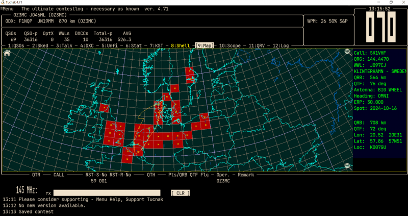 MR. Heburn havde vist undervuderet forholdene lidt i går? (https://www.dxinfocentre.com/tropo_nwe.html ) Som det så ud før aften i går. Det så ud til at blive en stille aften, men alligevel blev det til 10 lande og 35 felter, hvor længste qso var på 870 km til det nordlige Frankrig. Resultatet vil blive uploadet til contestrobotten når engang den vågner :-) Se vedhæftede. og god Påske. Vedhæftede filer: