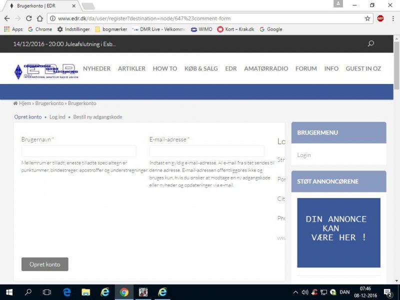 Ja tak. Det er virkelig påkrævet. F.eks. når man skal registrere sig som bruger, kan man ikke se indtastningsfelterne. Hvorfor skal vi registrere os igen? Det kan vel ikke være så besværligt at bruge de allerede registrerede data... 73 Svend, OZ7UV PS. Jeg taler (læser og skriver også) engelsk virkelig godt, men kommunikation fra EDR på engelsk? Redigeret 08/12-16 11:29